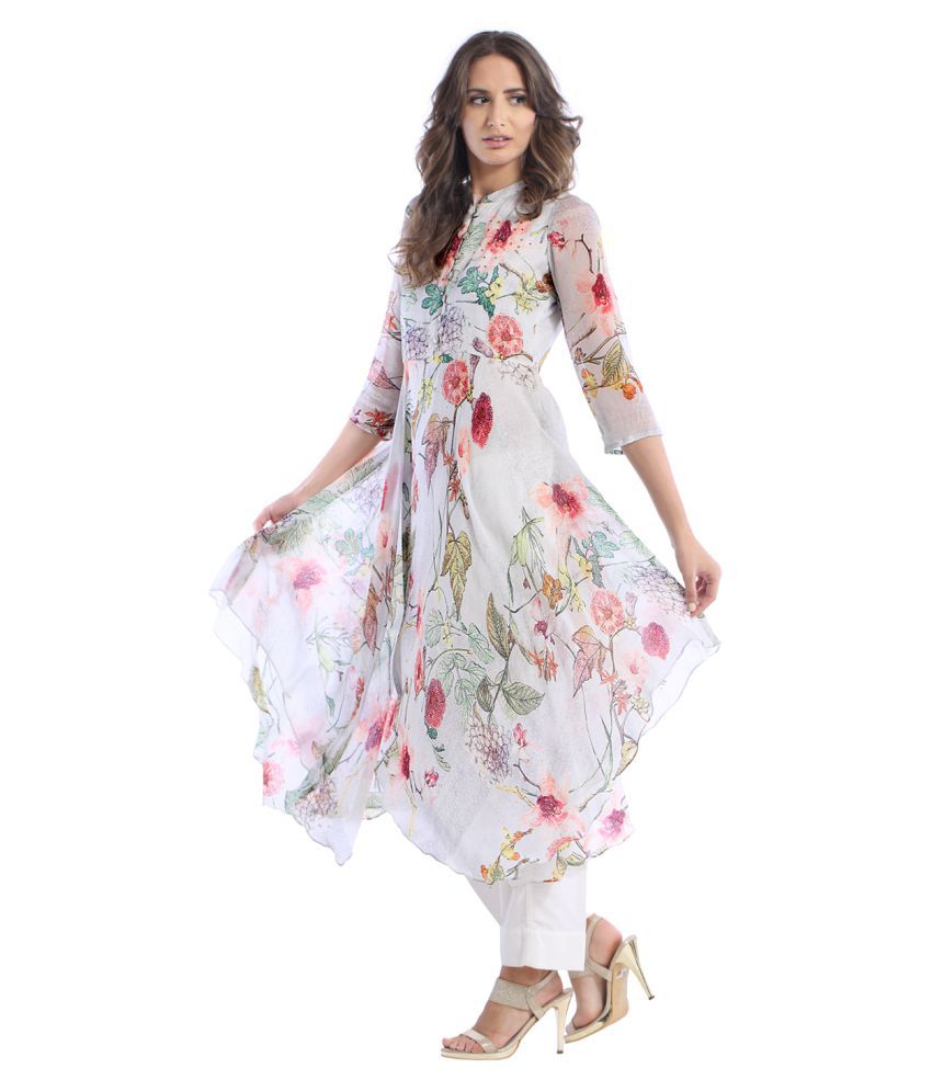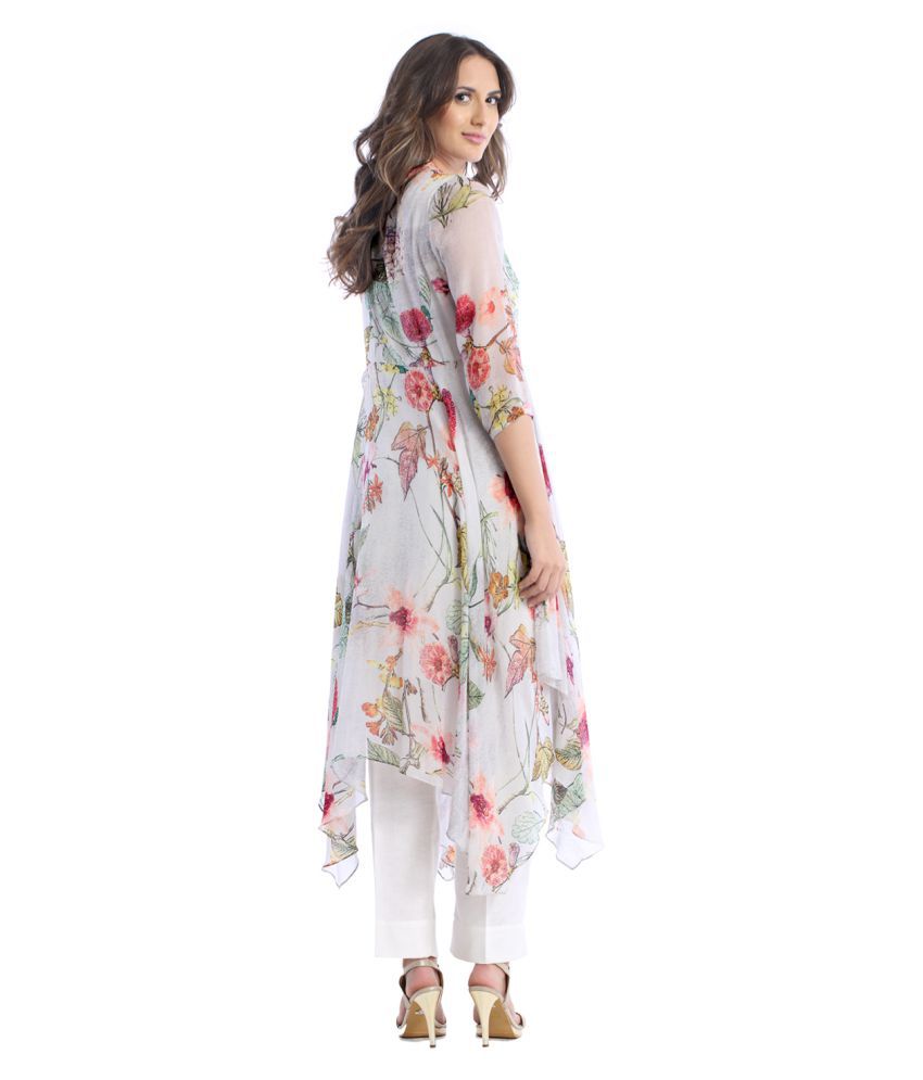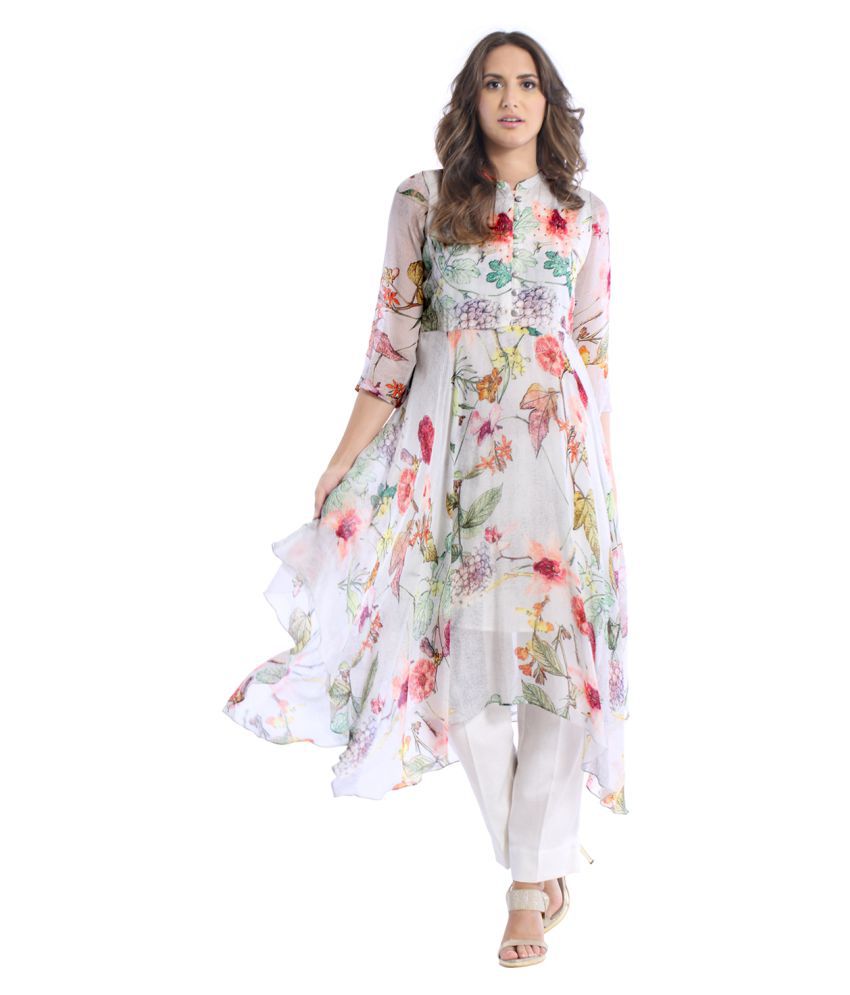 Basil Leaf Off White Chiffon Asymmetrical Hemline Kurti