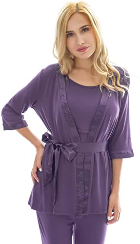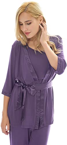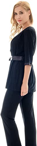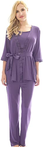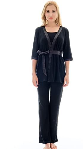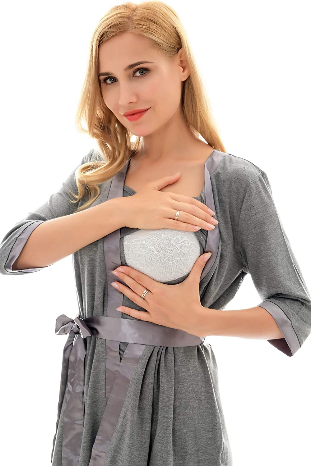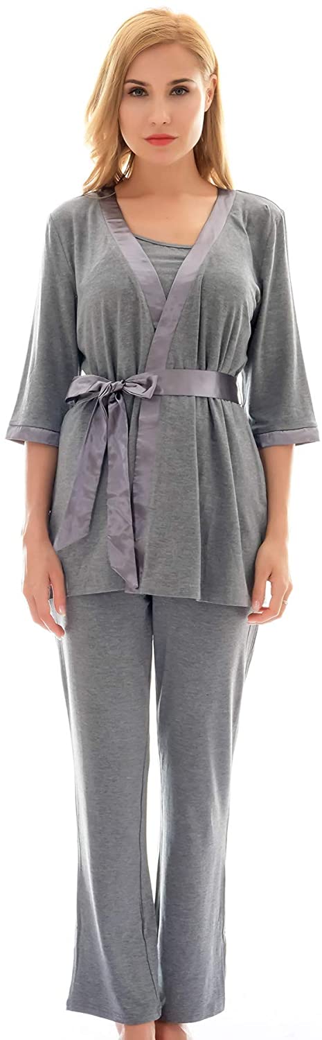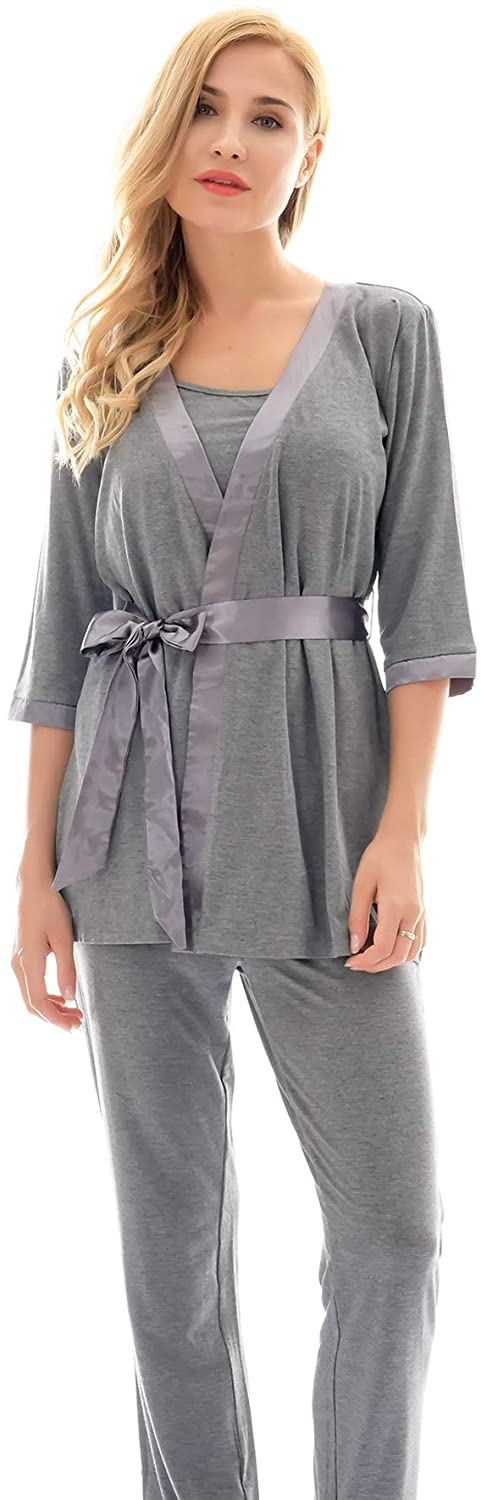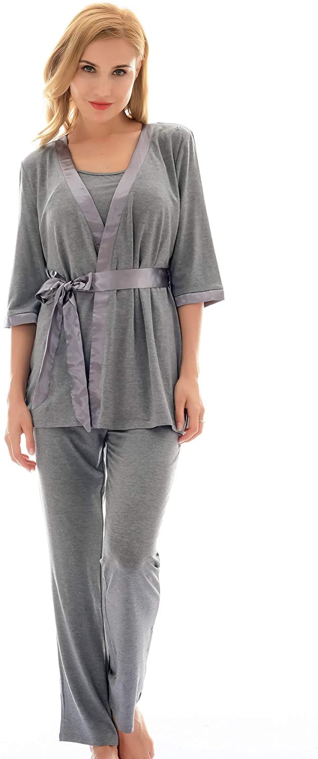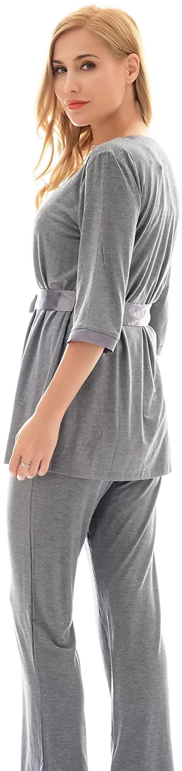 3 Pieces Pajamas Set:half sleeve cardigan,breastfeeding top and sleep pant.Double front layers, lift up the front layer of the tops for breastfeeding.Adjustable waistband,design to fit different stages of your pregnancy.No zipper,No lining,simple,make your breastfeeding so easy.
