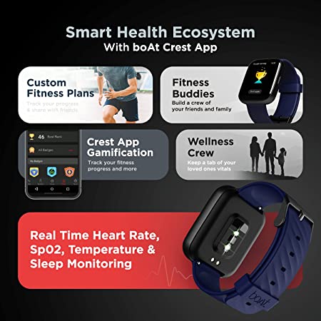 The watch comes with a 24x7 heart rate & SpO2 monitor (blood oxygen levels,) wellness crew and fitness buddies features to keep a tab on your overall health.