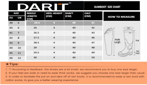 DARIT Men's Waterproof Durable Rubber Outdoor Gumboots with Highly Designed Sturdy Grip (Black)