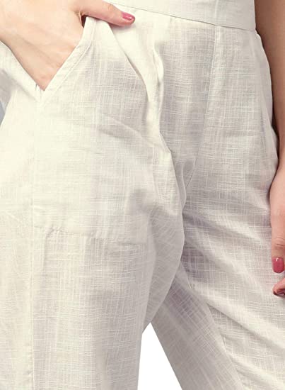 Yash Gallery Women's Cotton Slub Solid Regular Fit Casual Trouser Pants