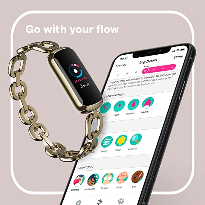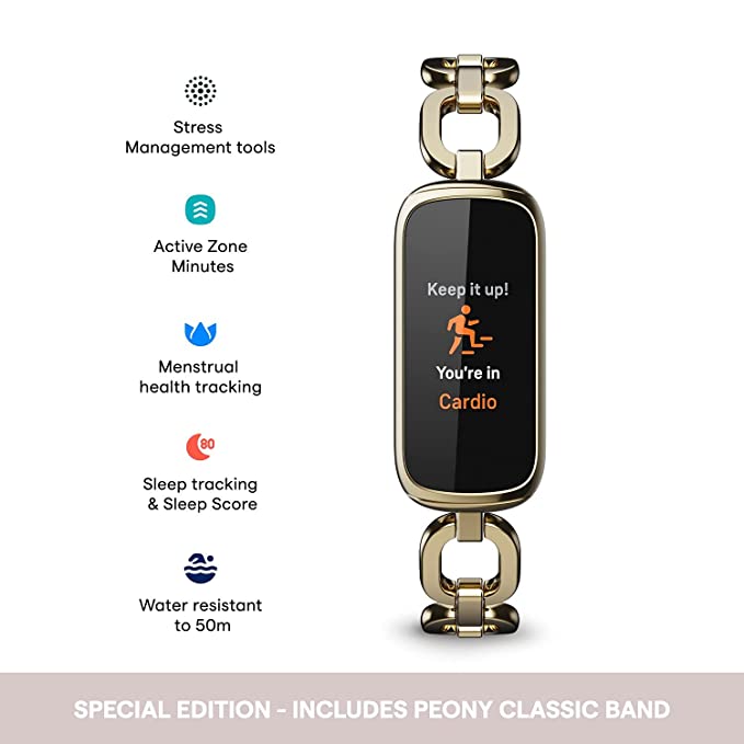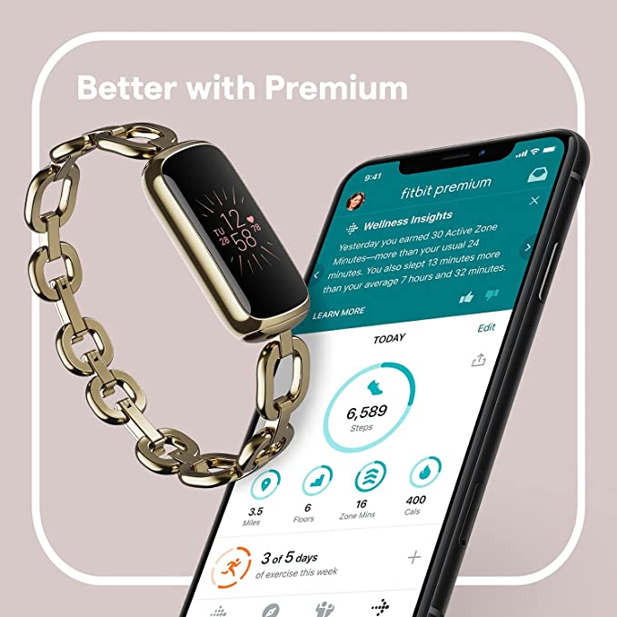 Fitbit Luxe Fitness and Wellness Tracker, Lunar White/Soft Gold Stainless Steel