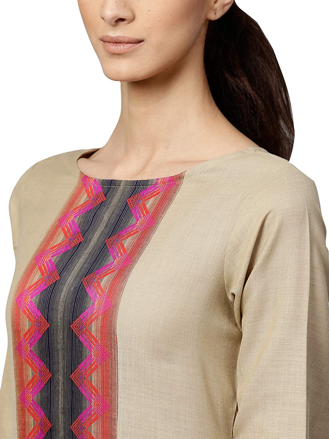Sleeves : Three-Quarter Sleeves || Sleeve Styling : Regular Sleeves || Neck : Round Neck
