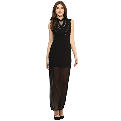 DESOGN: Nothing looks sexier than a mesh detailed separate, and this mini lined maxi dress is effortlessly acting the desired fashion goal. Featuring high neckline and a mesh loop at the front making it an elegant choice for a maxi dress.