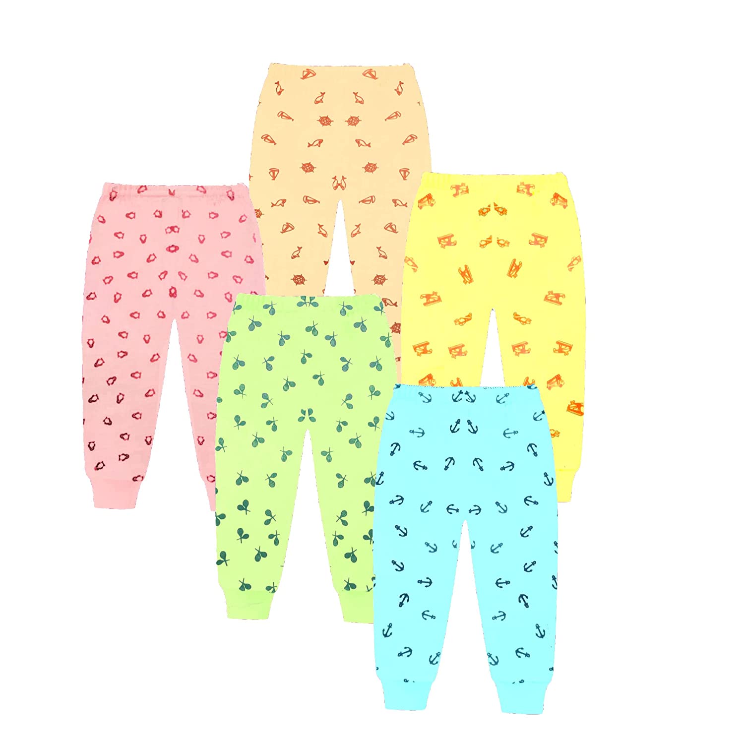 Chirsh Baby Boys and Girls Soft Cotton Pajama Pants Bottoms Lowers For Kids (Pack of 5)
