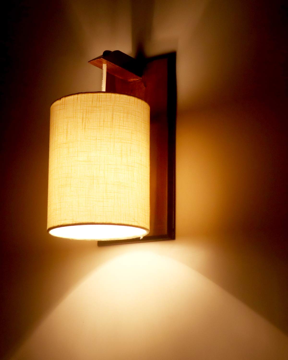 LIGHT ANGLE Wooden Surface with Fabric Mounted Wall Lamps (Beige)