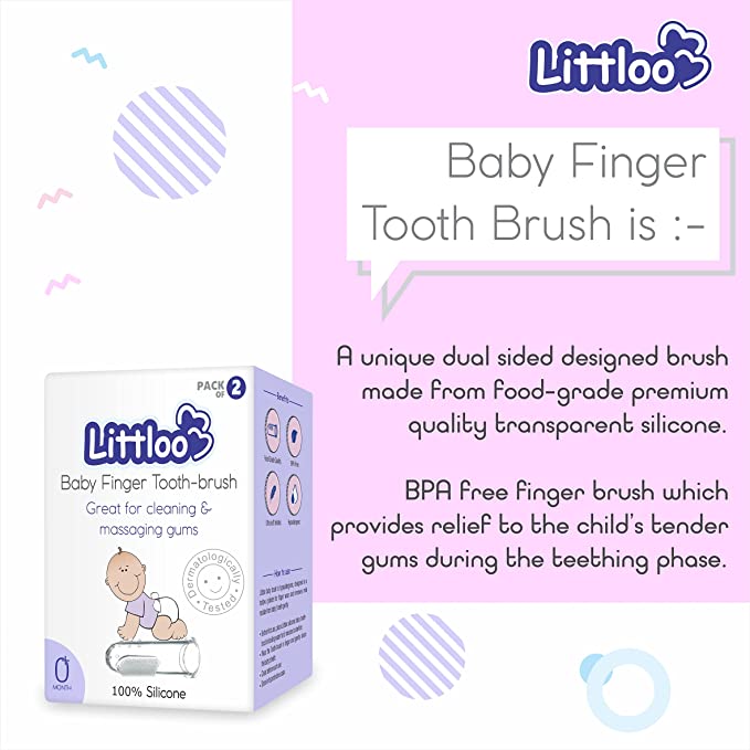 Littloo Baby Finger Toothbrush Reusable Silicon Made Food Grade Quality with Storage Case for Best Oral Hygiene Great Massaging & Easy Cleaning of Gums & Tongue Designed for Kids & Infants- Pack of 2