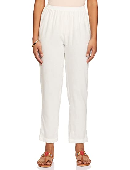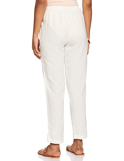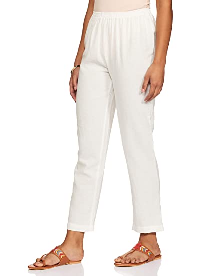 Yash Gallery Women's Cotton Slub Solid Regular Fit Casual Trouser Pants