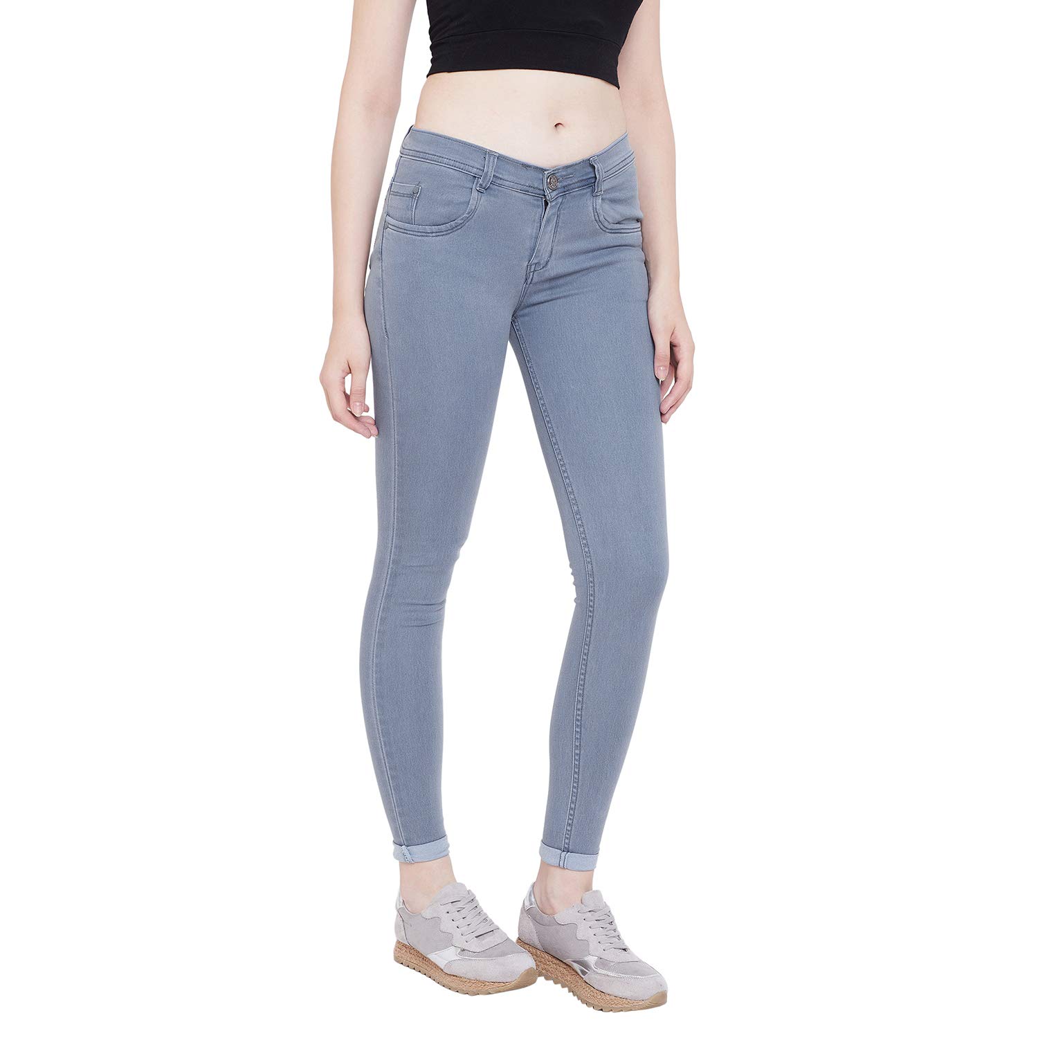 VMart Women Solid Cotton Polyester Knitted Denim High Rise Jeans 433991