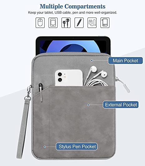 COMPATIBILITY – The sleeve bag fits most 9-11" Tablets. Fits iPad air 5 10.9" 2022, New iPad Pro 11 M1 2021, iPad 10.9 2020 iPad Air 4th Gen, iPad 9th Gen 10.2" 2021, New iPad 8th Gen 10.2 2020, iPad Pro 11" 2020, iPad Air 3 10.5" 2019, iPad 10.2" 2019, iPad Pro 10.5", iPad 9.7", iPad Air 2 9.7", iPad 4/3/2 9.7", Galaxy Tab S8 11", Tab S6 Lite 10.4" 2020, Tab S6 10.5", Tab S3/S2 9.7", Tab S4 10.5", Tab A 10.1", Tab A 9.7", Tab S5e 10.5", Tab Pro 10.1", Tab Note 10.1", Surface Go 2 10.5/Go 10".