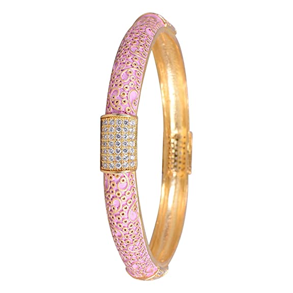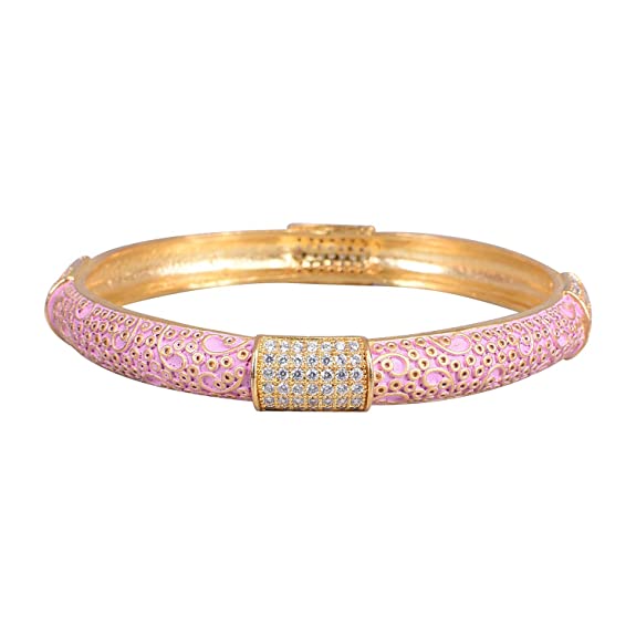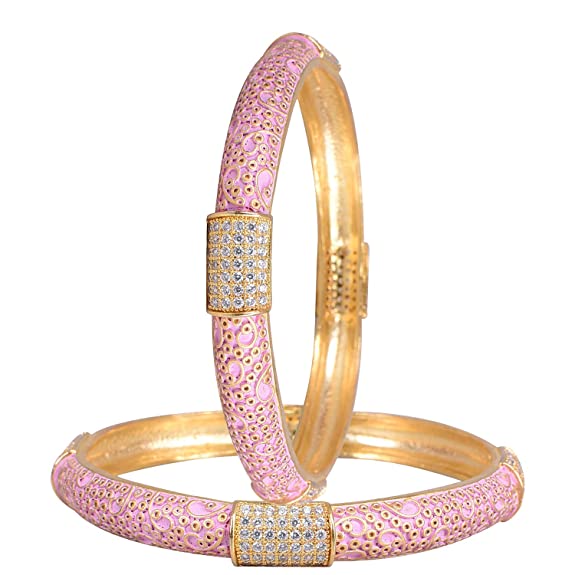 Ratnavali jewels American Diamond CZ Gold Plated Pink Meena Enamel Bangles for Women/Girls RV3387P