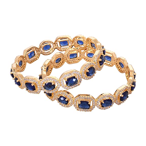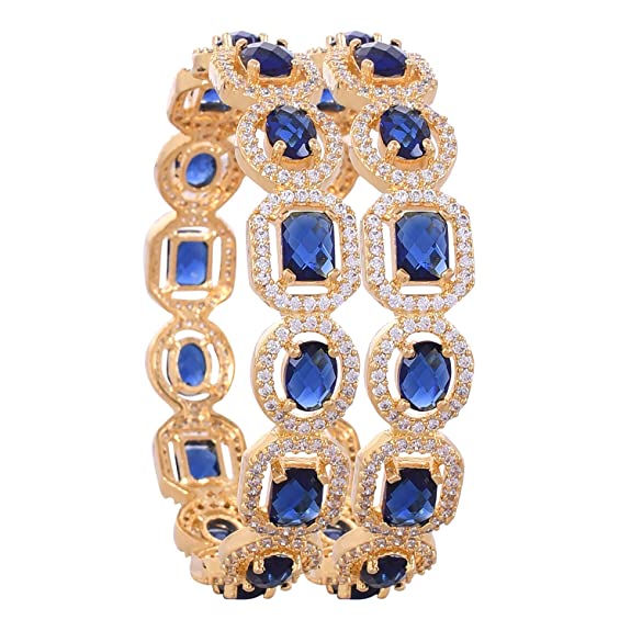 Ratnavali jewels American Diamond Studded Gold Plated Traditional Sapphire Blue Pear Shape CZ/Diamond Bangles for Women/Girls RV2648B