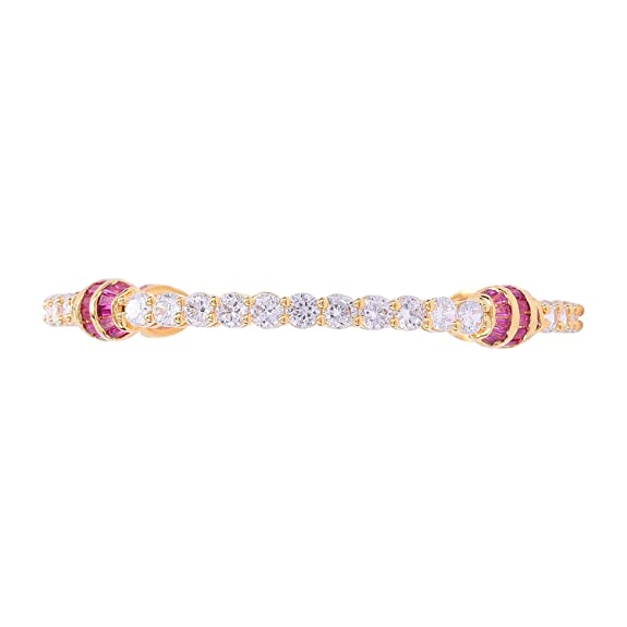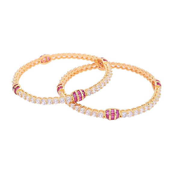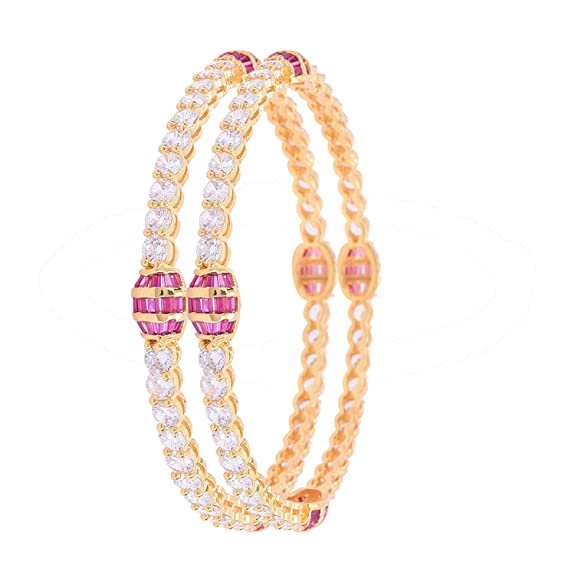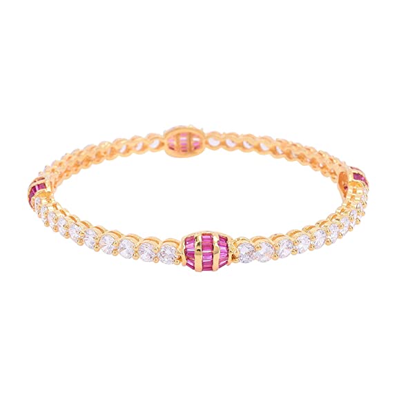 Ratnavali Jewels Gold Plated CZ Red White American Diamond Bangle for Women/Girls Ofice Party RV4013R