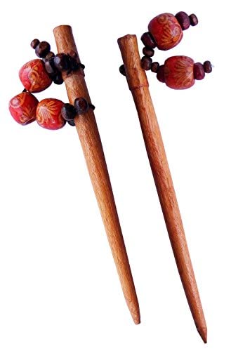 Salvus App SOLUTIONS Beautiful Handmade Wooden Juda Stick/Bun Pin with Beads & Hangings for Women & Girls Hair Accessory, Set of 2