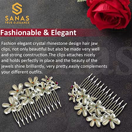 Why buy this product: Sanas Diamond studded hair brooches are very stunning and stylish, Add elegance that adds grace and charm to your personality and outfit. Very comfortable and also have great grip. These do not slip down easily.