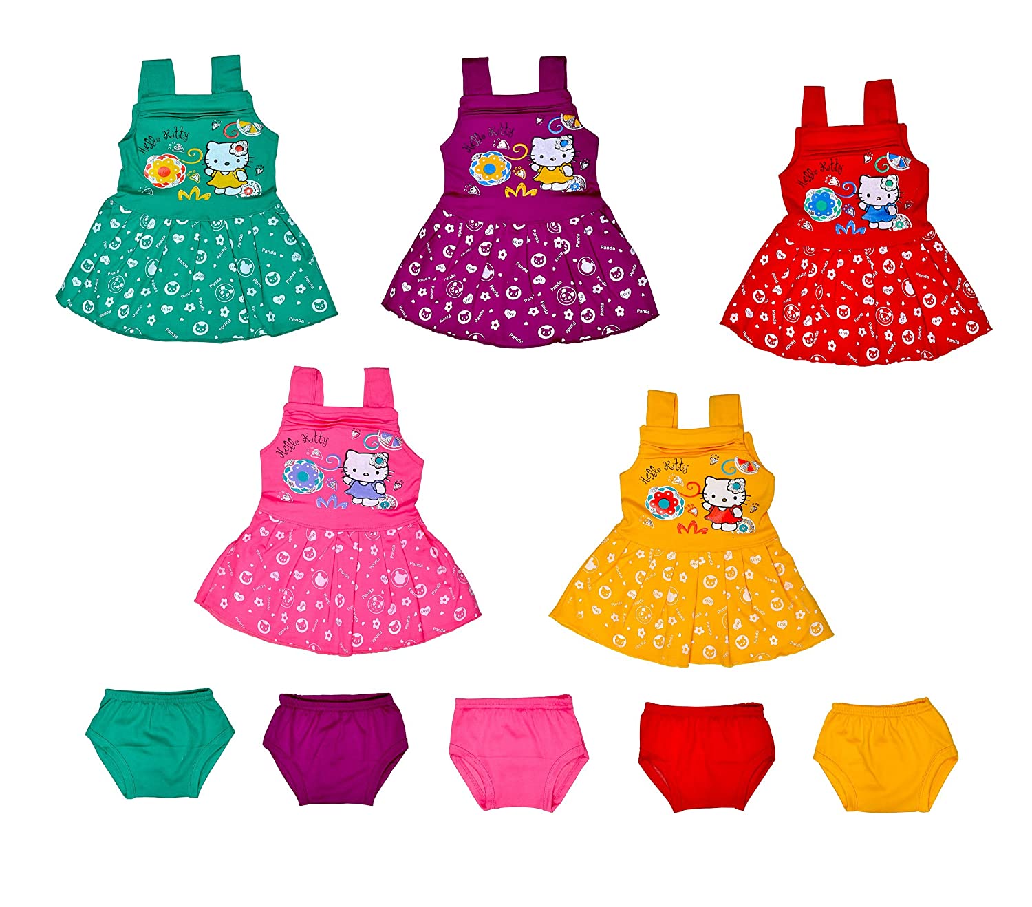 Sathiyas Baby Girl's A-Line Knee Length Dress (Pack of 5)