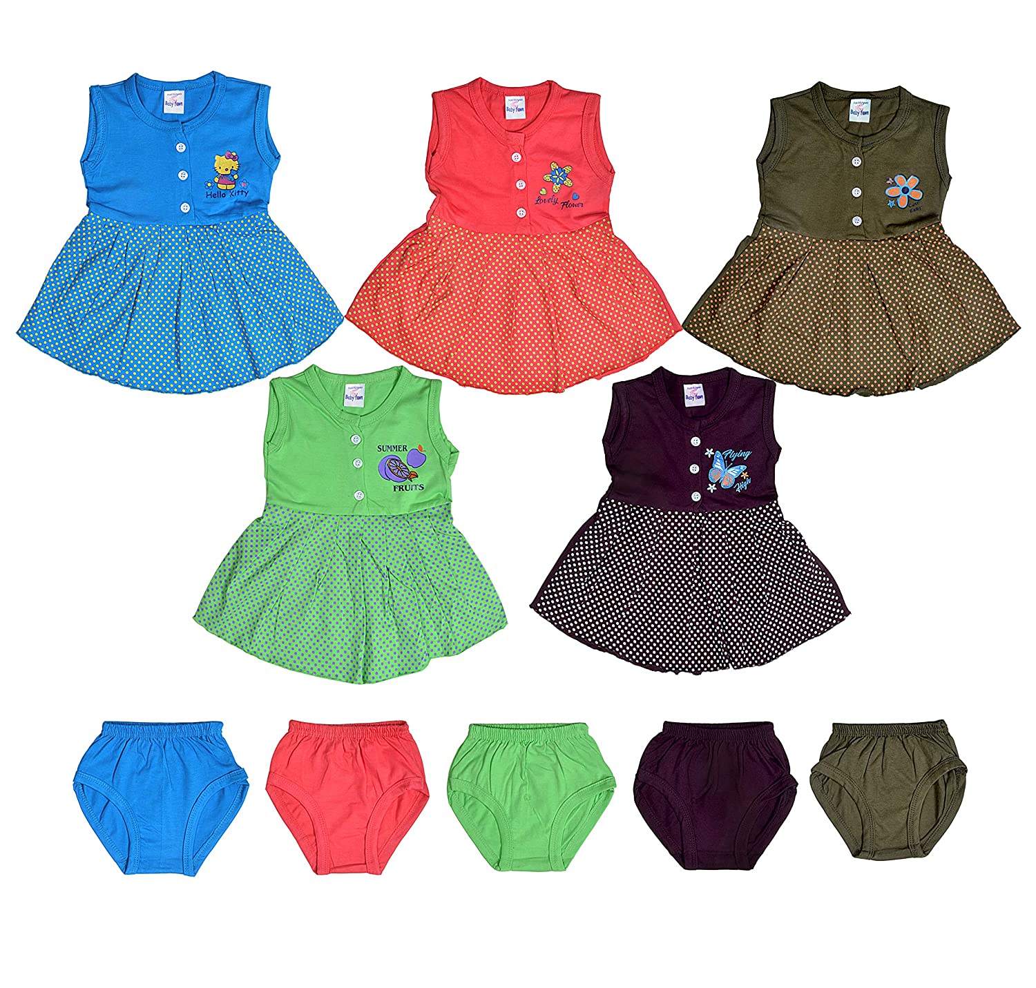 Sathiyas Baby Girl's A-Line Knee Length Dress (Pack of 5)