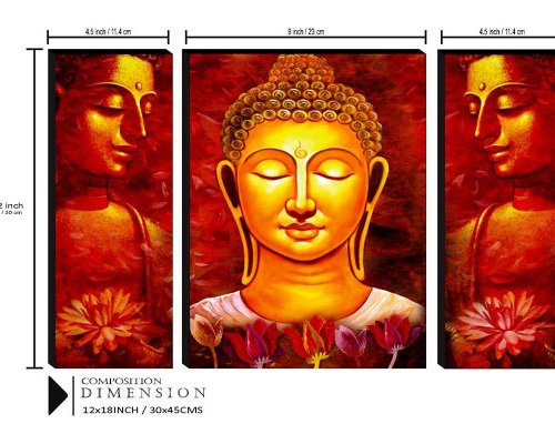 Set contains: Set of 3 Buddha PaintingsColour: Multi-colouredSize & FitDimensions: 30cm x 45cmWeight:0.4Package Dimensions: 25 x 32 x 3Material & CareMDFWipe with a clean cloth.