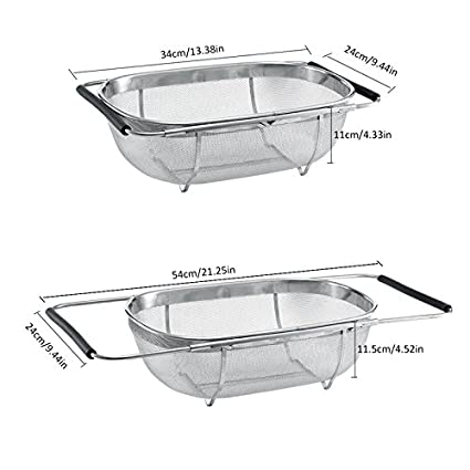 Stainless Steel Adjustable Colander Strainer 13.4X 9.4" Nonslip Handles Drain Over The Sink Colander Basket Vegetable Fruit Noodles Strainer for Rice Vegetable Fruits and Noodls