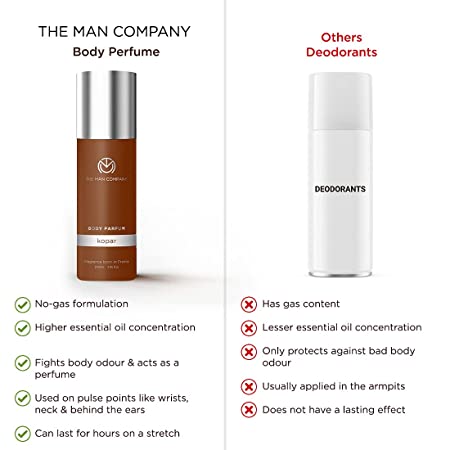 Long Lasting Fragrance: The Man Company Kopar Deodorant for men holds a fresh, woody and evergreen scent of tall Cypress trees. Use this perfume for long-lasting freshness and energy to go strong, day & night.