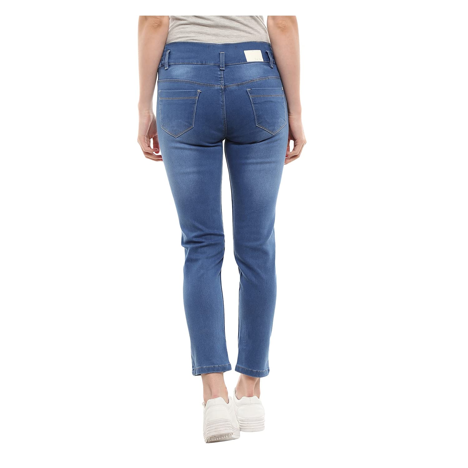 VMart Women Solid Cotton Polyester Knitted Denim High Rise Jeans 433991