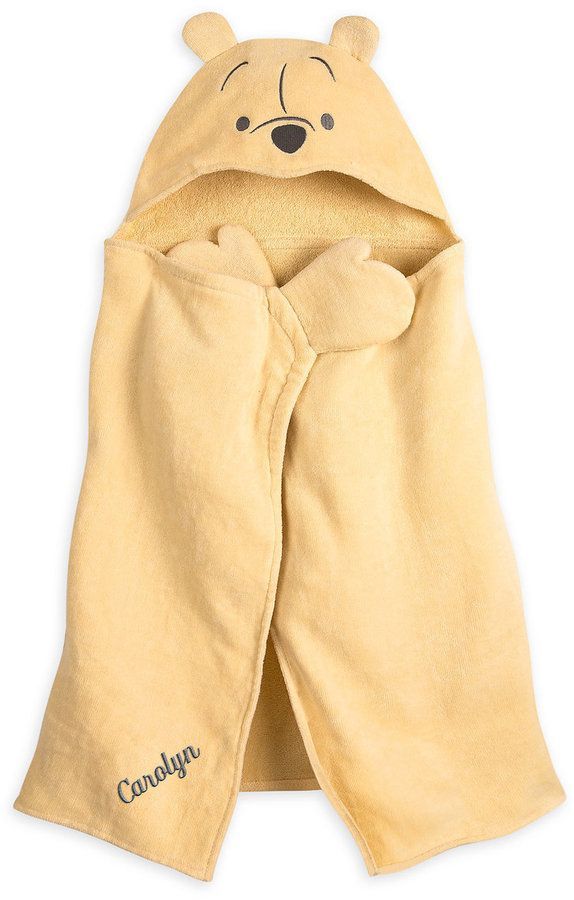 Your little cub will be blissful at bathtime after a warm hug from Pooh when drying off. This Winnie the Pooh Hooded Towel has the silly ol' bear's face on top and ''Pooh bear'' embroidered on the back.